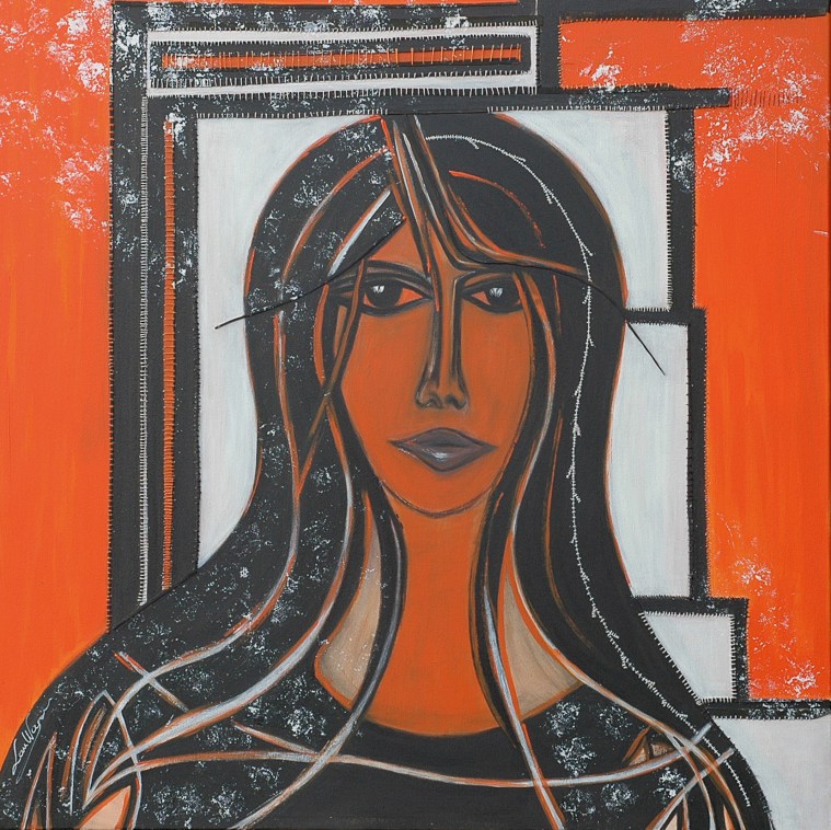 Madone/ LauWagon . Toile sur châssis . 100 x 100 cm . Acrylique, broderies