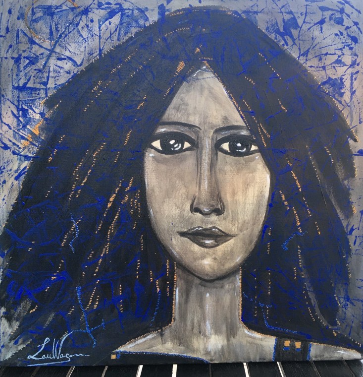 Lunaire / LauWagon . Toile sur châssis . 50 x 50 cm . Acrylique, broderie