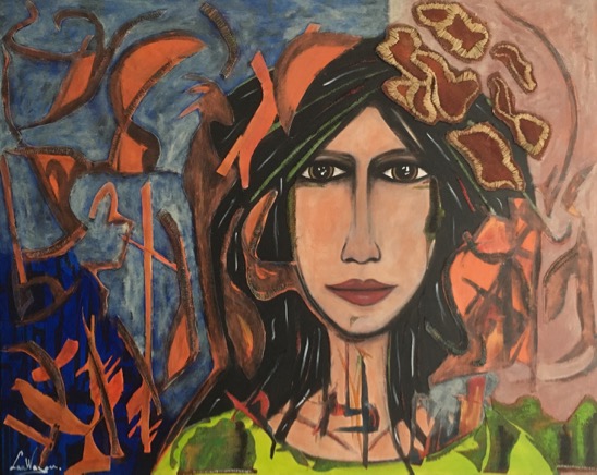 Imaginaire / LauWagon. Toile sur châssis . 80 x 100 cm . Acrylique, broderies